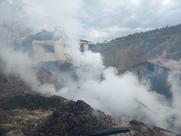 İhbar üzerine olay yerine intikal eden İtfaiye ve Afad ekipleri uzun uğraşlar sonunda yangını söndürülürken yakınında bulunan iki evde hasar oluştu.